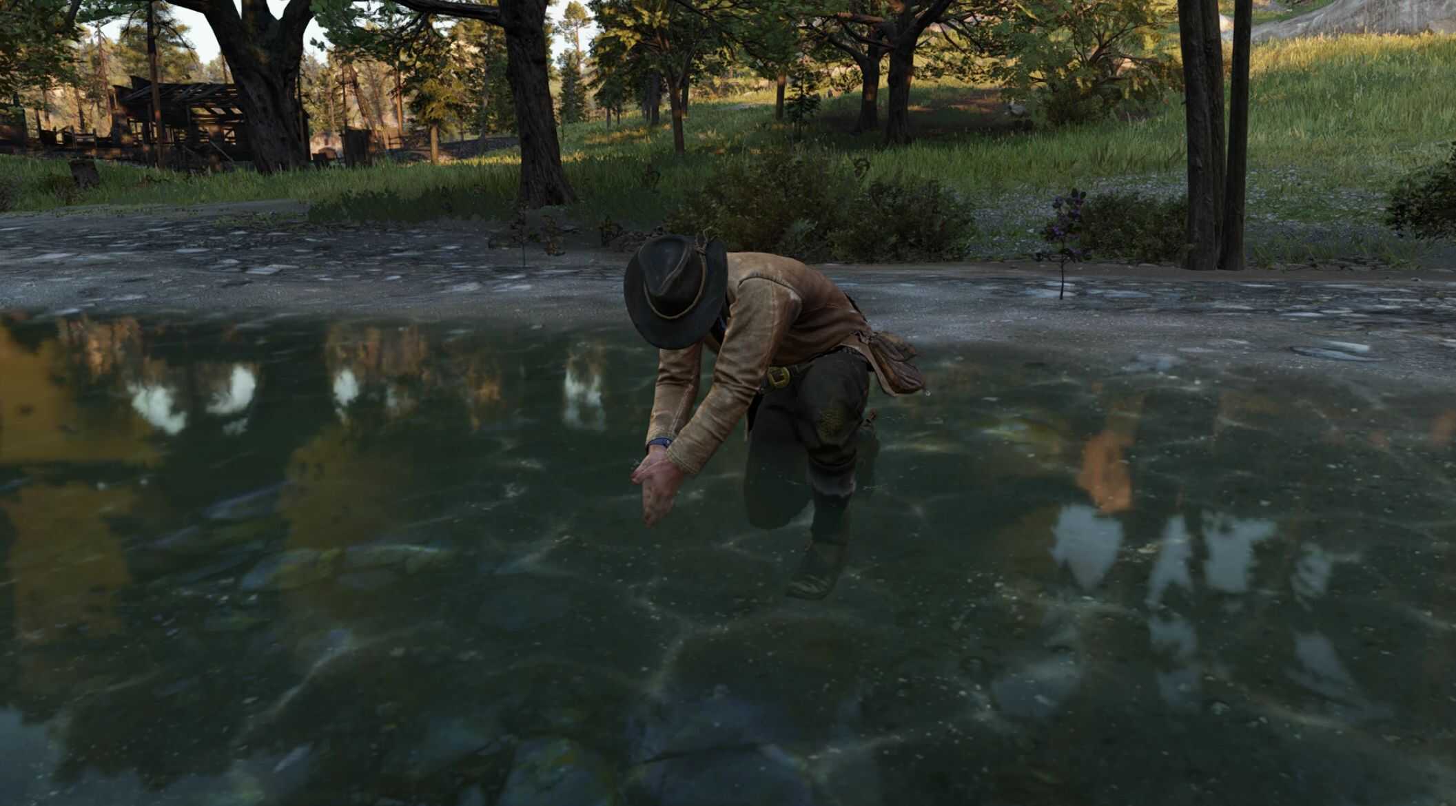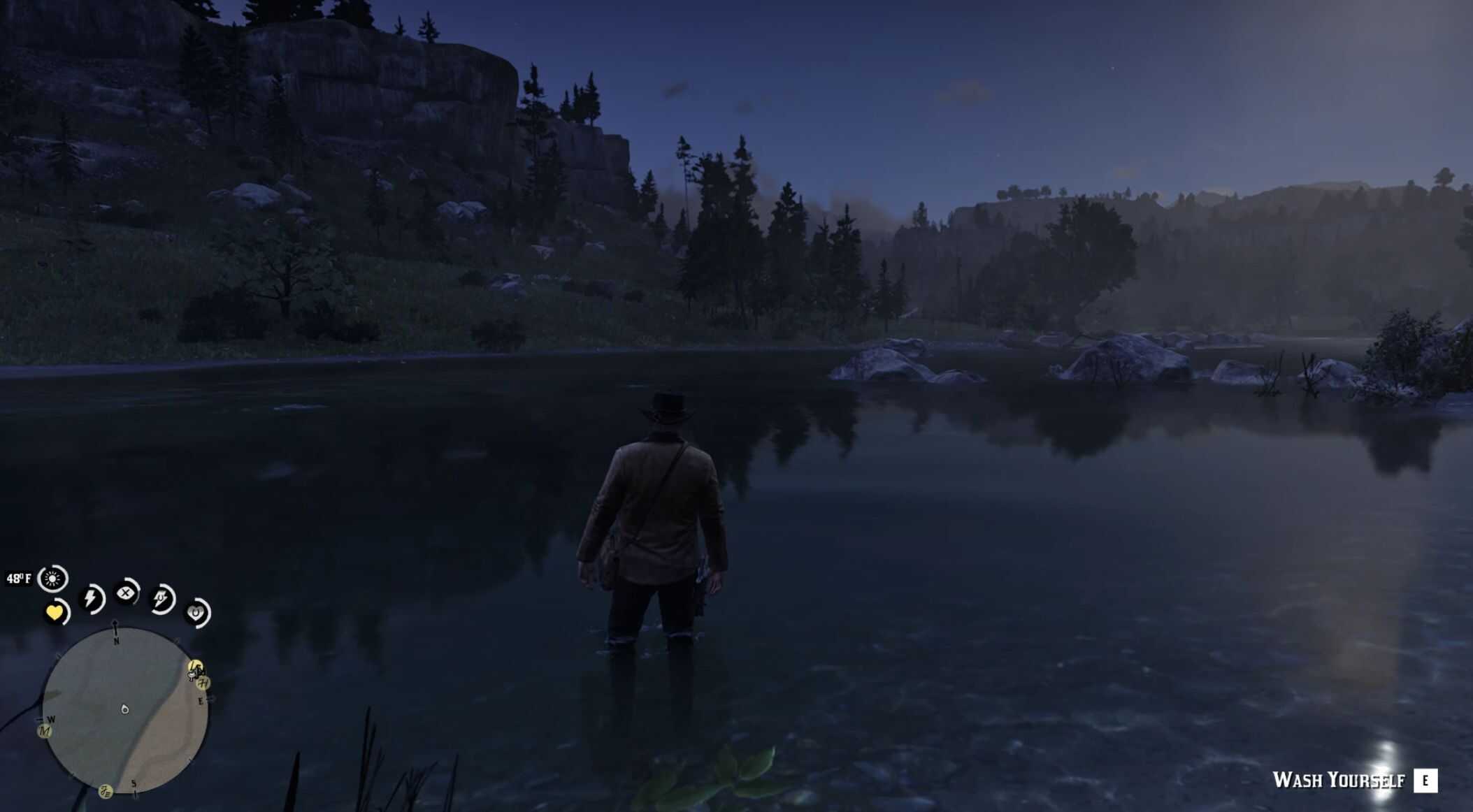 Wash Yourself is an immersive gameplay mod that allows Arthur or John to clean themselves in shallow water while exploring the world. Rivers, lakes, streams, ponds, and other shallow bodies of water can be used to wash away dirt, blood, mud, and grime at any time, without relying on hotel baths.